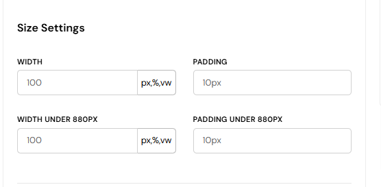 This is where you can configure the badge width and padding. You can perform the same for badge size on devices with screens smaller than 880px.