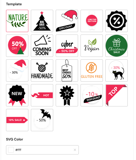 In the event that you enable displaying the textual badge icon, you can input a path for the SVG you wish to use, adjust the icon stroke color, fill color, size in pixels, choose where you wish to position the icon relative to badge text, and adjust the size for the icon gap.