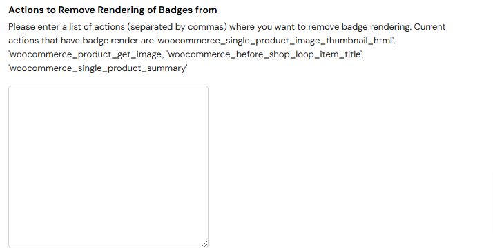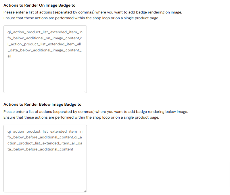 Similarly, you can also input lists of actions for removing the rendering of On Image and Below Image badges to.