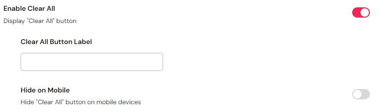 After this, you can choose whether you wish to display the 'Clear All' buttons in your Comparison Tables.