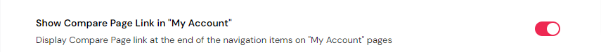After this, you have the option to select whether you wish to show the Compare page link at the end of the navigation items on My Account pages or not.