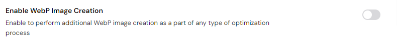 Next up you can configure the WebP Image Compression quality (1 is maximum conversion and lowest image quality, while 100 is minimal conversion and highest image quality).