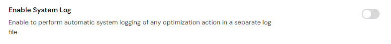 Next up, you can enable the System Log. By enabling this option, you'll turn automatic system logging of any action during the optimization process in a separate log file.