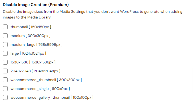 The option that follows allows you to select predetermined image sizes you do not wish WordPress to create.