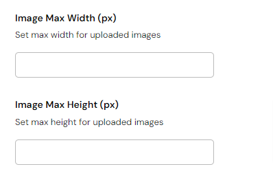 First off, you can set a maximum width and height for uploaded images in pixels.