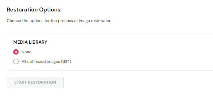 Simply select the All optimized images option and click the Start Restoration button.