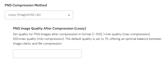 In the event that you selected one of the Lossy methods, you can also configure the compression quality - 1 is max compression (lowest image quality), while 100 is minimum compression (highest image quality).