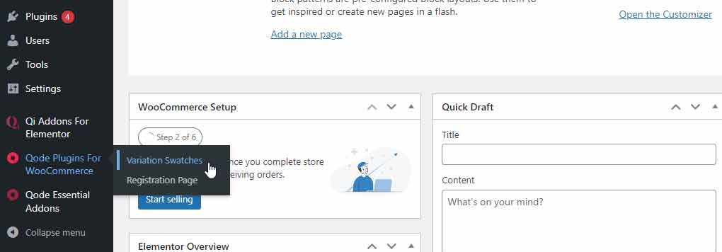 Install and Activate QODE Variation Swatches for WooCommerce from your Plugins page.