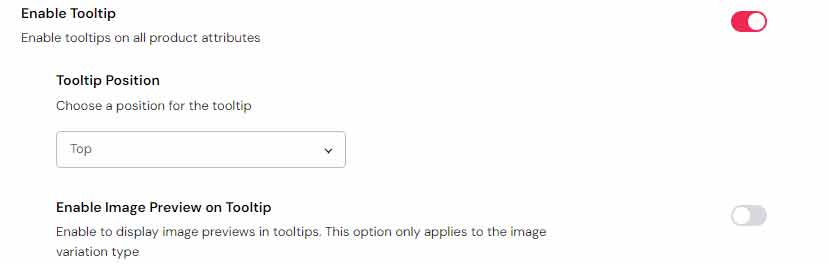 Following this, you can enable tooltips for product attributes which get displayed over the mouse pointer when an attribute is hovered over.