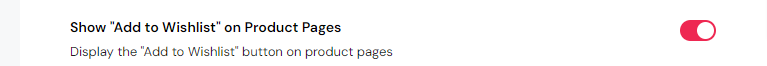 Here you can enable displaying the 'Add to Wishlist' buttons on your product pages.