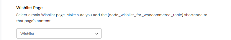 Firstly, you can choose a page you wish to use as the main wishlist page. Please make sure you also add the [qode_wishlist_for_woocommerce_table] shortcode to that page's content.