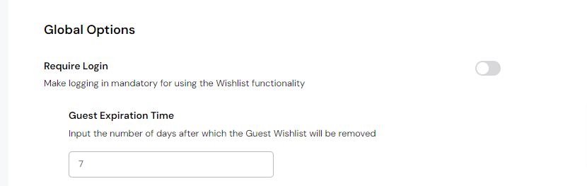 This is where you can choose whether wishlist creation functionality requires users to log in first. If you leave this functionality open for all users, you can input the number of days after which guest wishlists will be automatically removed.