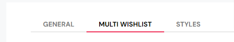 In the Wishlist Page section you can make general adjustments to the wishlist pages and their appearance. This section is also divided into three sub-tabs, General, Multi Wishlist and Style.