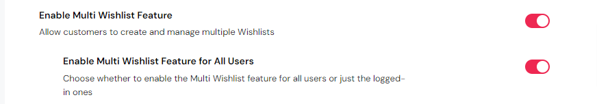 After this, you have the option to enable the Multi Wishlist feature for your site, which effectively allows your visitors to create, save and share multiple wishlists.