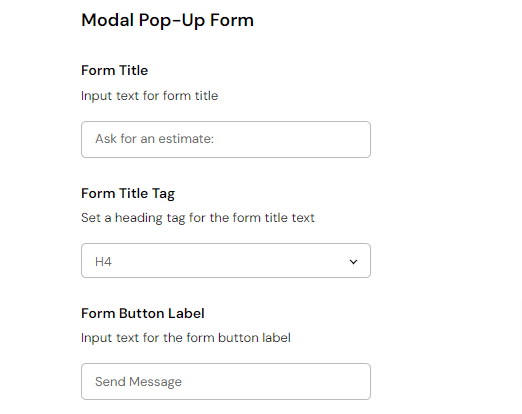 After this, you can make adjustments to the form itself. You can input a custom title for the form, set a heading tag for the form, and input a custom label for the form button.