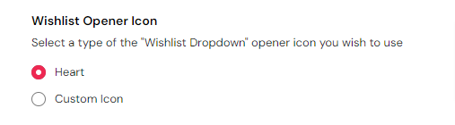 First off, you can choose between predetermined, plugin-defined heart icon and using a custom icon of your own for the Wishlist Dropdown widget.