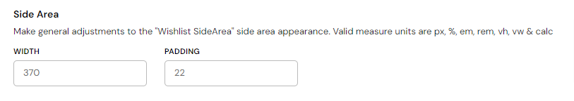 Lastly, you can configure the width and input padding values for the Wishlist SideArea widget.