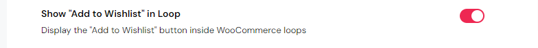 After this, you can choose whether you wish to display the 'Add to Wishlist' buttons in your WooCommerce loops (shop pages, archives, and everywhere else where WooCommerce lists are displayed).