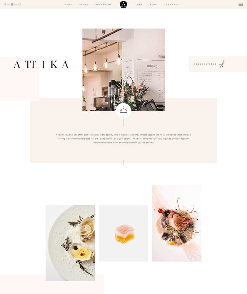 Taste the website excellence with Attika, a fine dining restaurant and haute cousine theme. Discover a fine selection of features and layouts on Attika’s menu and welcome your website visitors with style.
