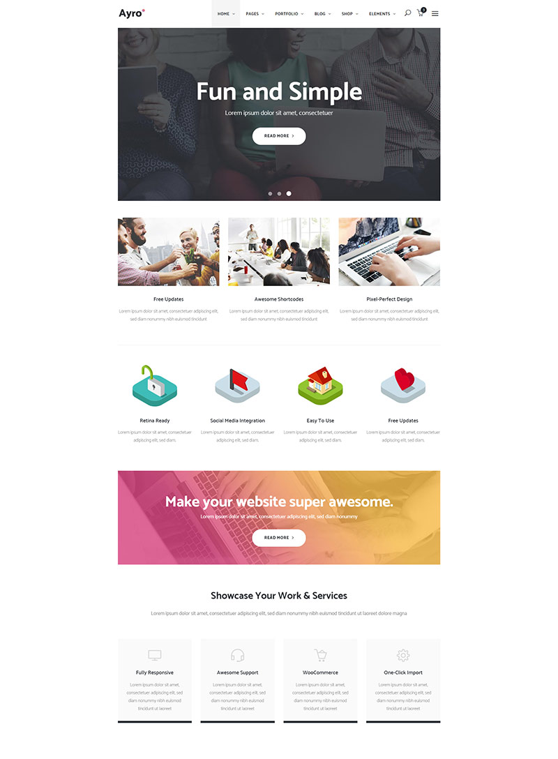 Turn your website into a digital art with Ayro, a theme for tech startups and digital businesses. This fresh theme comes with tons of practical options and templates perfectly suitable for any kind of business website.