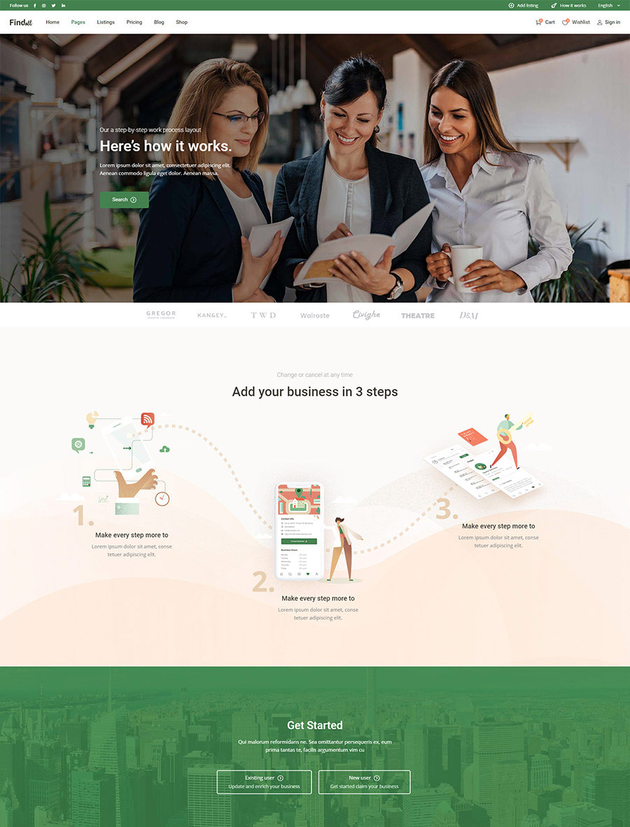 Your new business directory has arrived! Welcome to FindAll, a theme ideal for all types of business and service listing websites, equipped with all the essentials a modern directory can ever need.