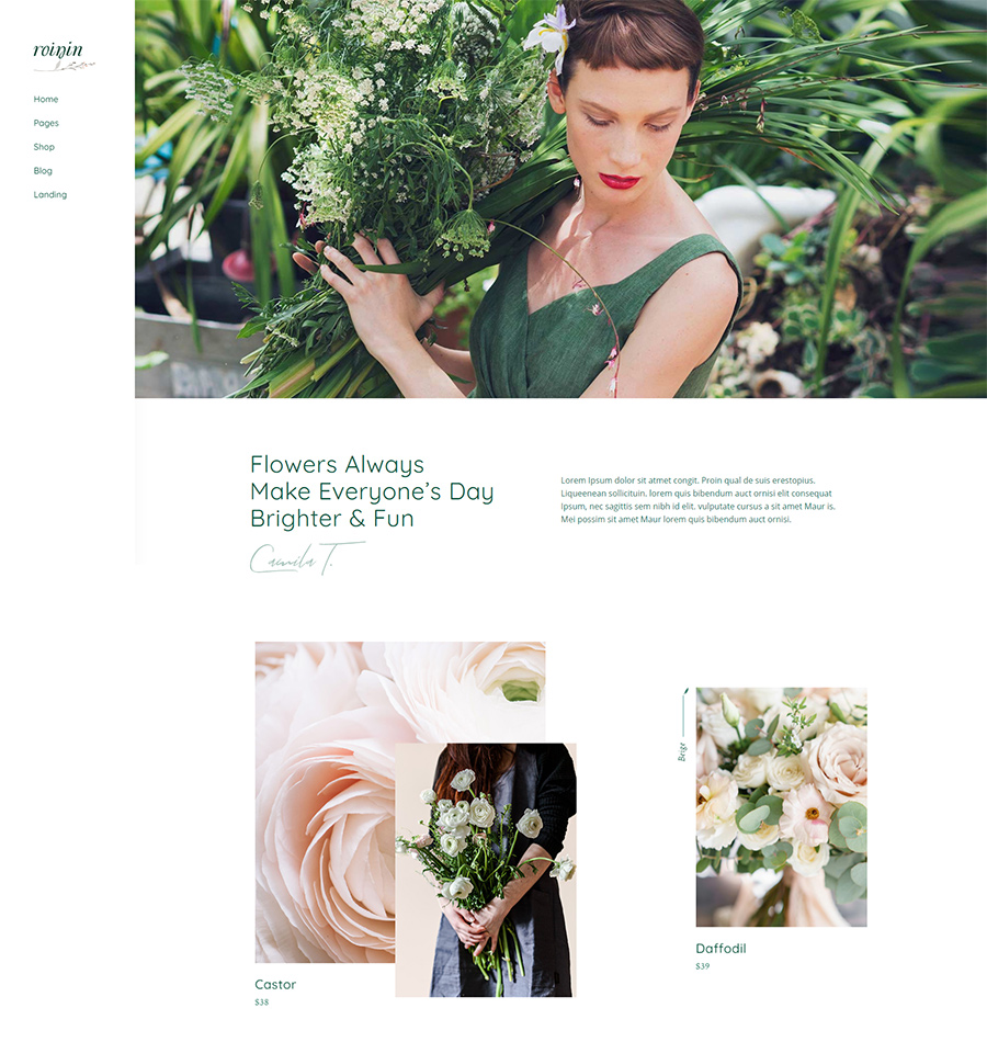 Plant the seeds of your online success with Roisin, a theme for modern flower shops and florists! Roisin has all the elements to turn your new website into a true thing beauty.