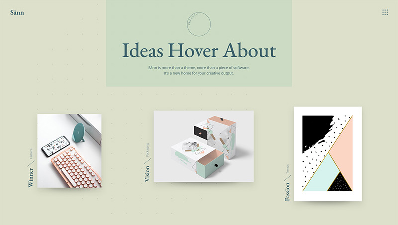 Introducing Sånn, a contemporary creative agency theme ideal for showcasing your body of work. Whether you're a creative agency, a design studio, a designer, any type of freelancer, or you wish to create a compelling modern app landing page, Sånn has you covered.