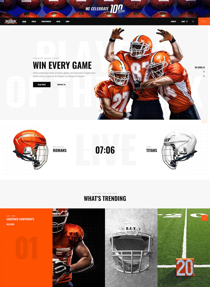 Meet your new sports team leader, Top Scorer! The theme comes with full SportsPress integration & layouts for football, baseball, hockey and rugby, but that’s not all – we made sure each of the templates can be easily customized for any sport you choose! Join the winning team, get Top Scorer!